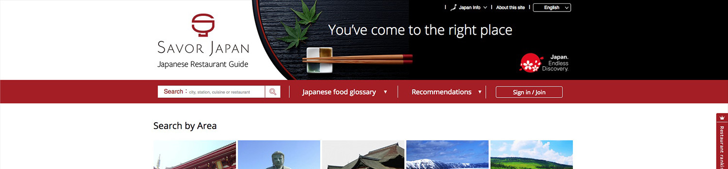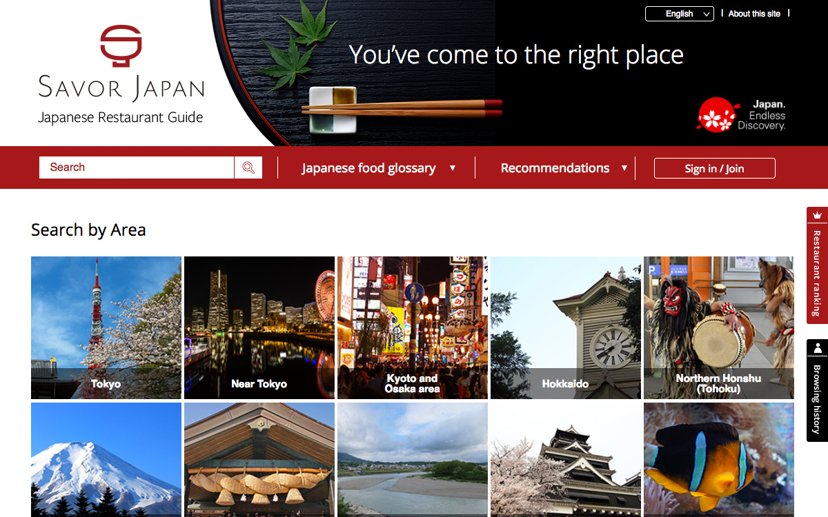 日本の料理人の魅力を伝えることをコンセプトに、総勢2,000人の料理人の経歴や得意料理まで、全て英語で紹介しています。訪日外国人に関心の高い「エリア」「ジャンル」を優先表示させるなど、ユーザビリティにもきめ細かな配慮がなされていることが特長としてあげられます。ネイティブコピーライターの監修による質の高いライティングが好評をえている作品です。